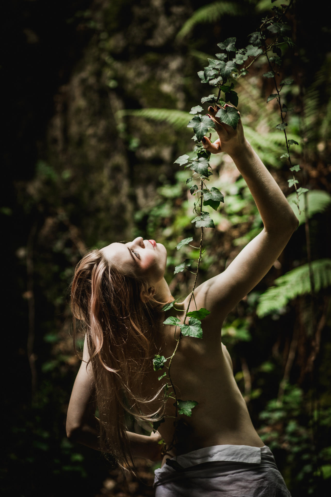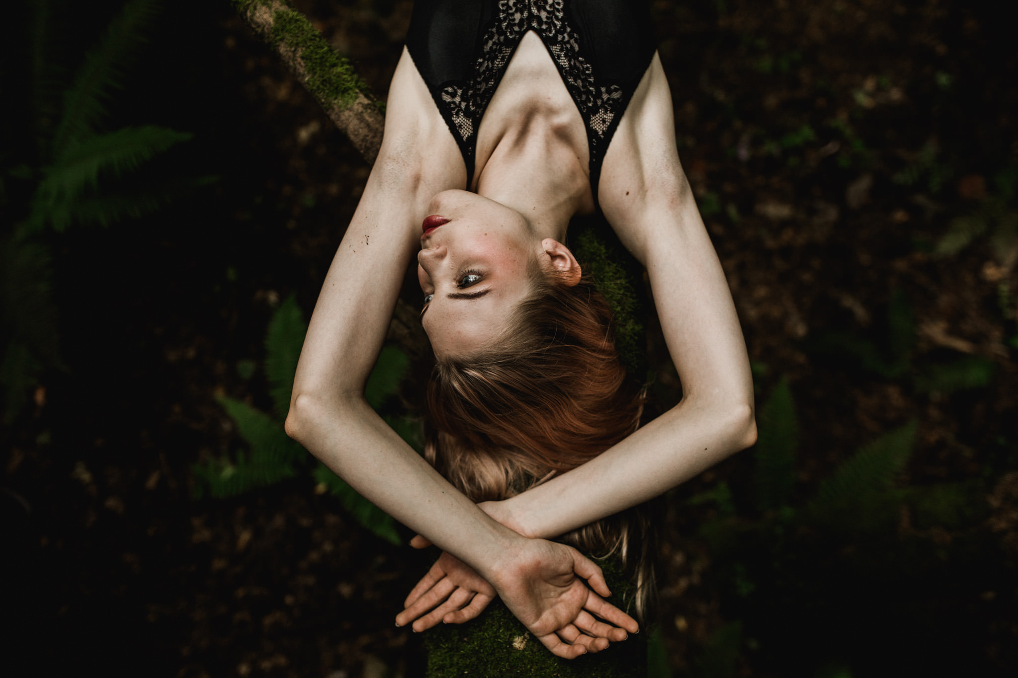 Light is a key factor as well and on that day it was how I like it most – soft and clean. No hard shadows, no harsh highlights, just painterly smooth tones on a bright skin. The intimacy and melancholic mood that the forest gave us was a perfect canvas for boudoir and nude shots that we created. The session was like a theatre play in harmony with nature.