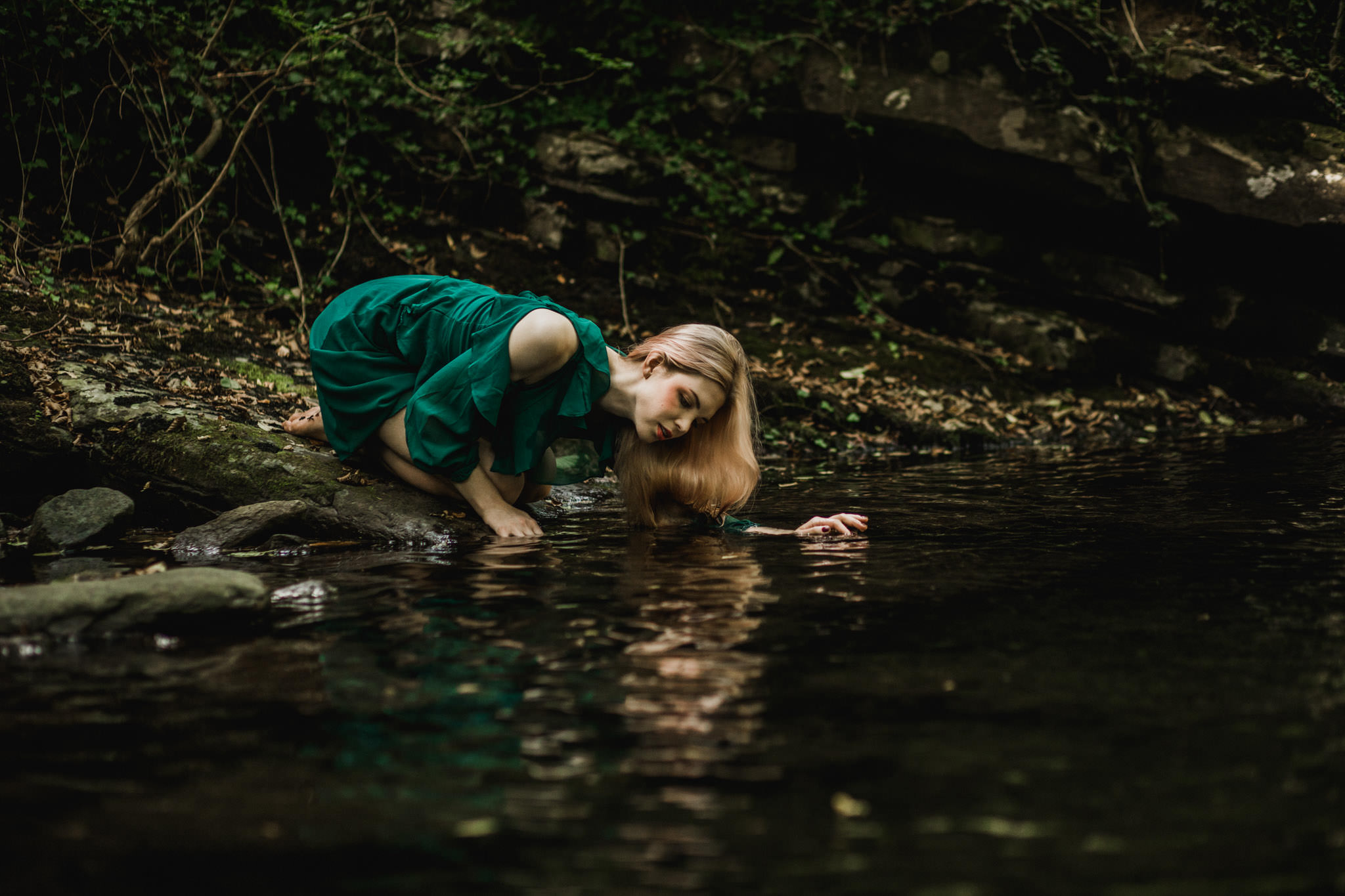 The location I chose for the session also played an important part. Forests of Pratomagno mountain in Tuscany have a fairytale air to them. They are dark, humid, covered in fern, cut by springs and divided by rocky walls. They invite to walk in, close your eyes and set your imagination free. They feel like home.